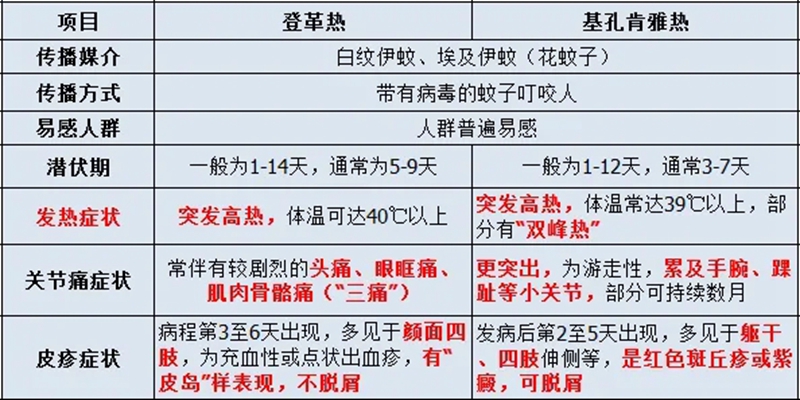 兩類疾病初期癥狀類似流感(發(fā)熱、頭痛、肌肉/關(guān)節(jié)痛、皮疹),老年人免疫力較弱,出現(xiàn)癥狀后立即就醫(yī),告知醫(yī)生近期活動史(如是否去過蚊蟲密集區(qū)域),避免自行用藥延誤治療。
