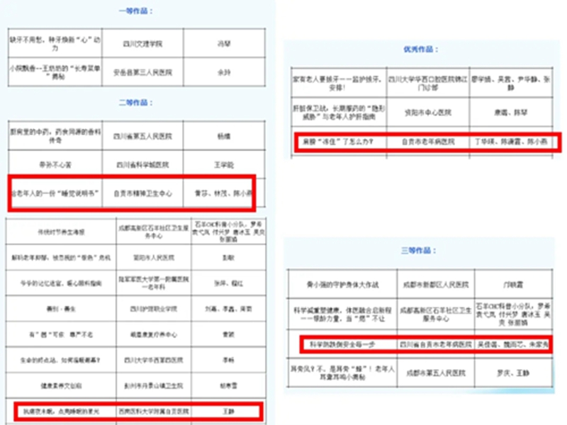 本次科普作品征集活動(dòng)由四川省健康促進(jìn)中心與四川省老年學(xué)學(xué)會(huì)聯(lián)合主辦,聚焦老年心理健康、慢病防治、體重管理等主題。我院醫(yī)護(hù)人員結(jié)合臨床經(jīng)驗(yàn),將專(zhuān)業(yè)知識(shí)轉(zhuǎn)化為通俗有趣的科普內(nèi)容,作品因內(nèi)容實(shí)用、形式新穎獲評(píng)審好評(píng)。